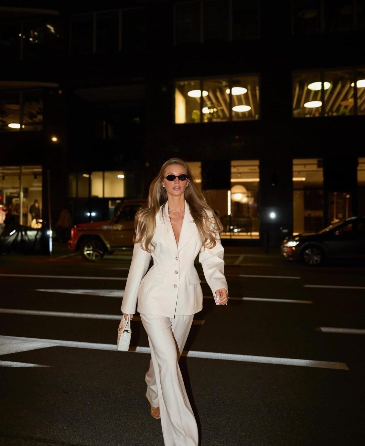 Agata Sieramska wybrała zestaw San Luis Cream. To total look, który jest definicją nowoczesnej elegancji. Proste spodnie wraz z taliowaną marynarką podkreślą siłę stylizacji, zachowując przy tym kobiecy ton.