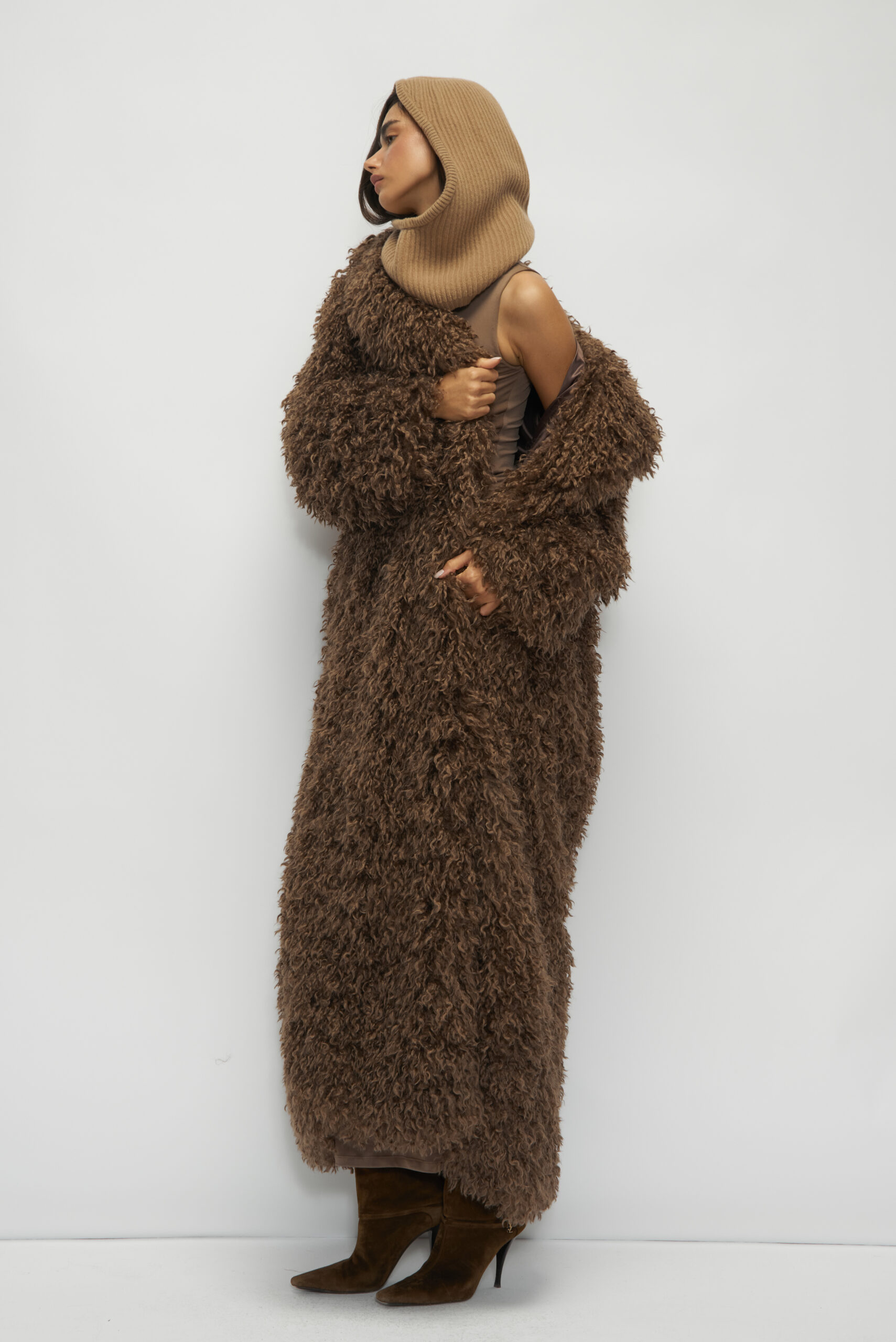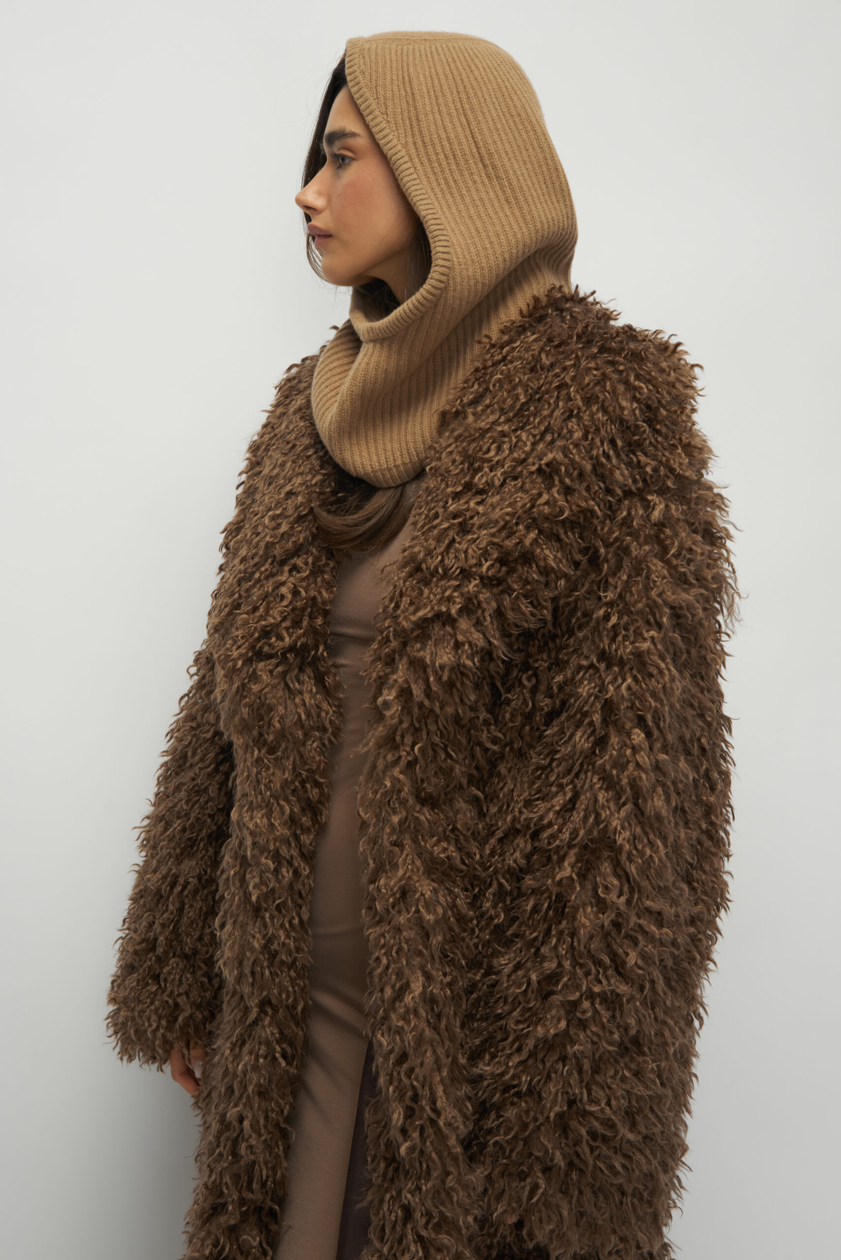 Balaclava w kolorze beżowym. Wykonana z delikatnej, miękkiej dzianiny idealnie dopełni każdą zimową stylizację.