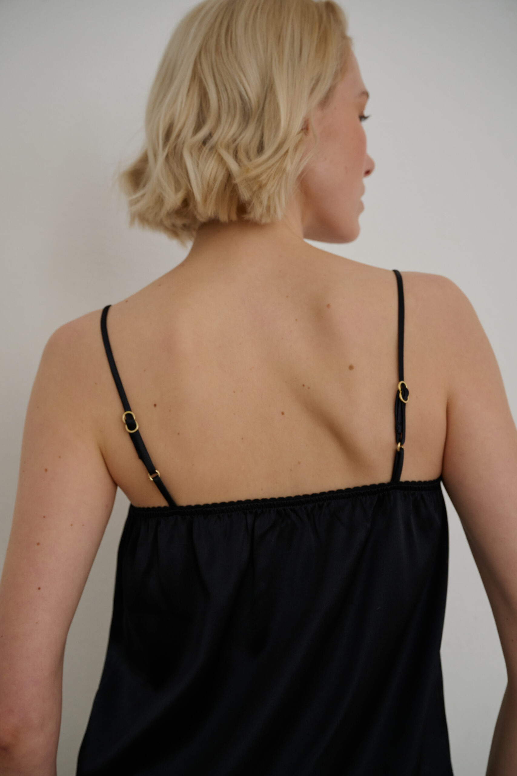 Lekka bluzka na cienkich ramiączkach wykonana z przyjemnej w dotyku wiskozy. Delikatna forma sprawia, że model doskonale sprawdzi się zarówno w codziennych, jak i bardziej eleganckich stylizacjach. Noś ze Spódnicą Black 02, aby stworzyć pełny look.