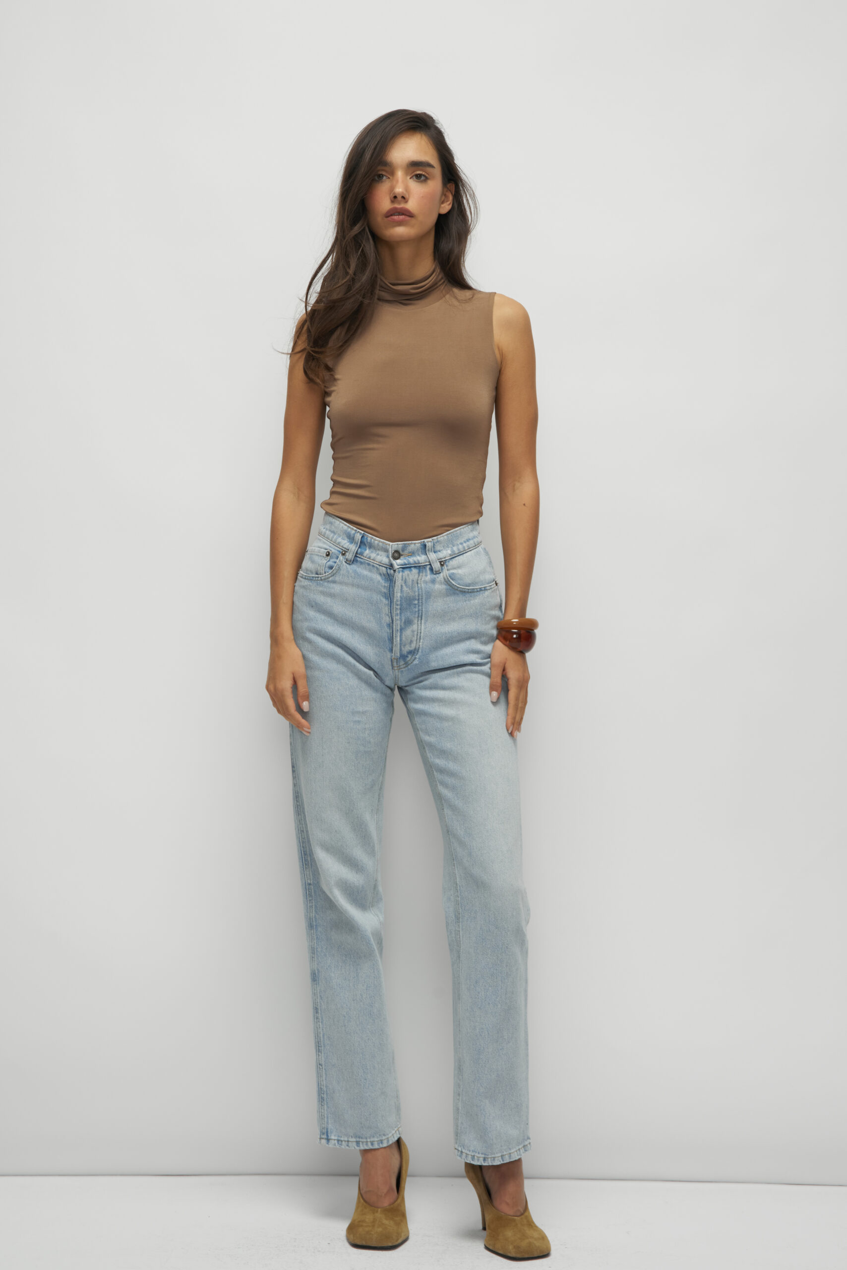 Bluzka z golfem wykonana z miękkiej tkaniny. Zapinana na suwak z tyłu. Ponadczasowa baza do każdej stylizacji.