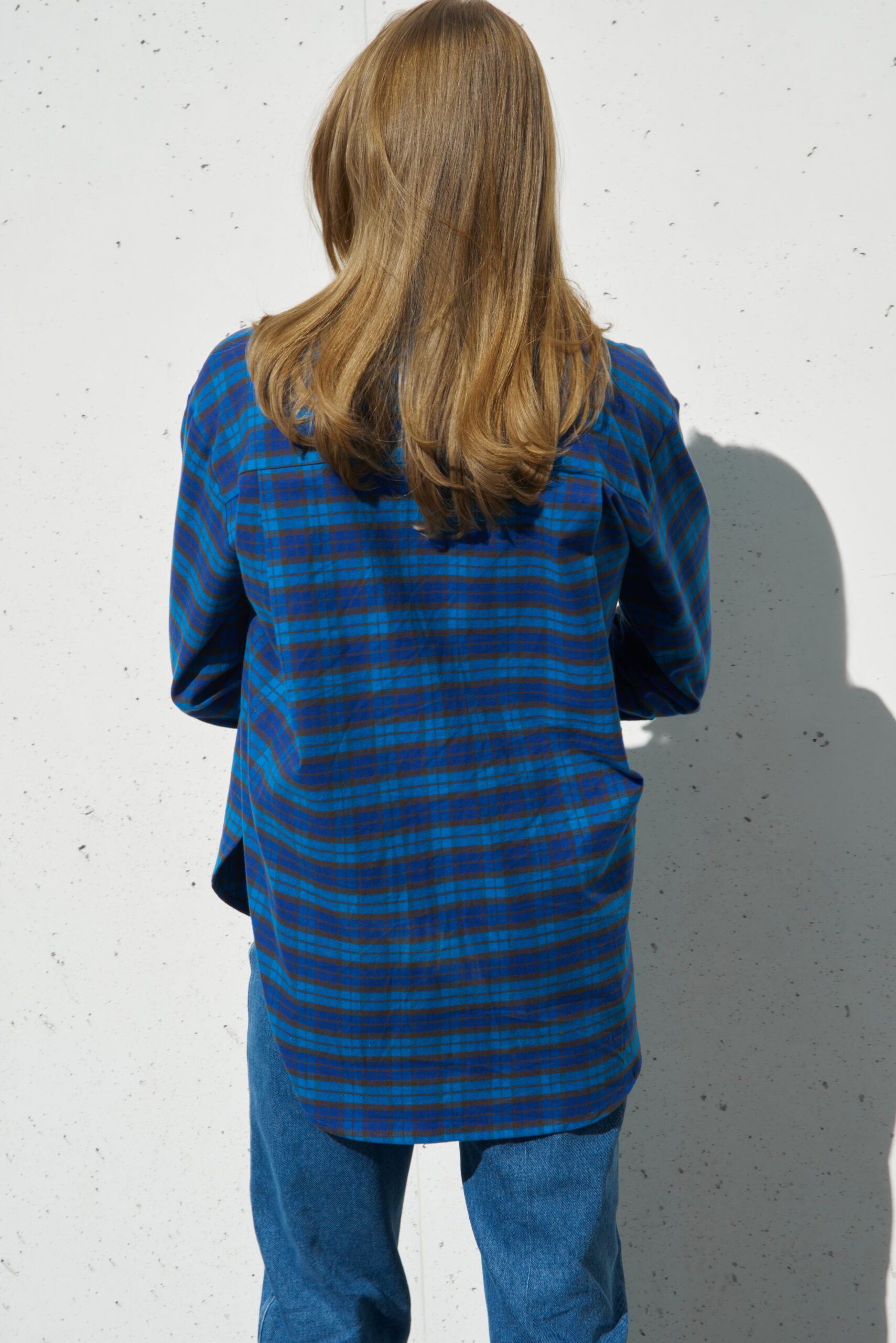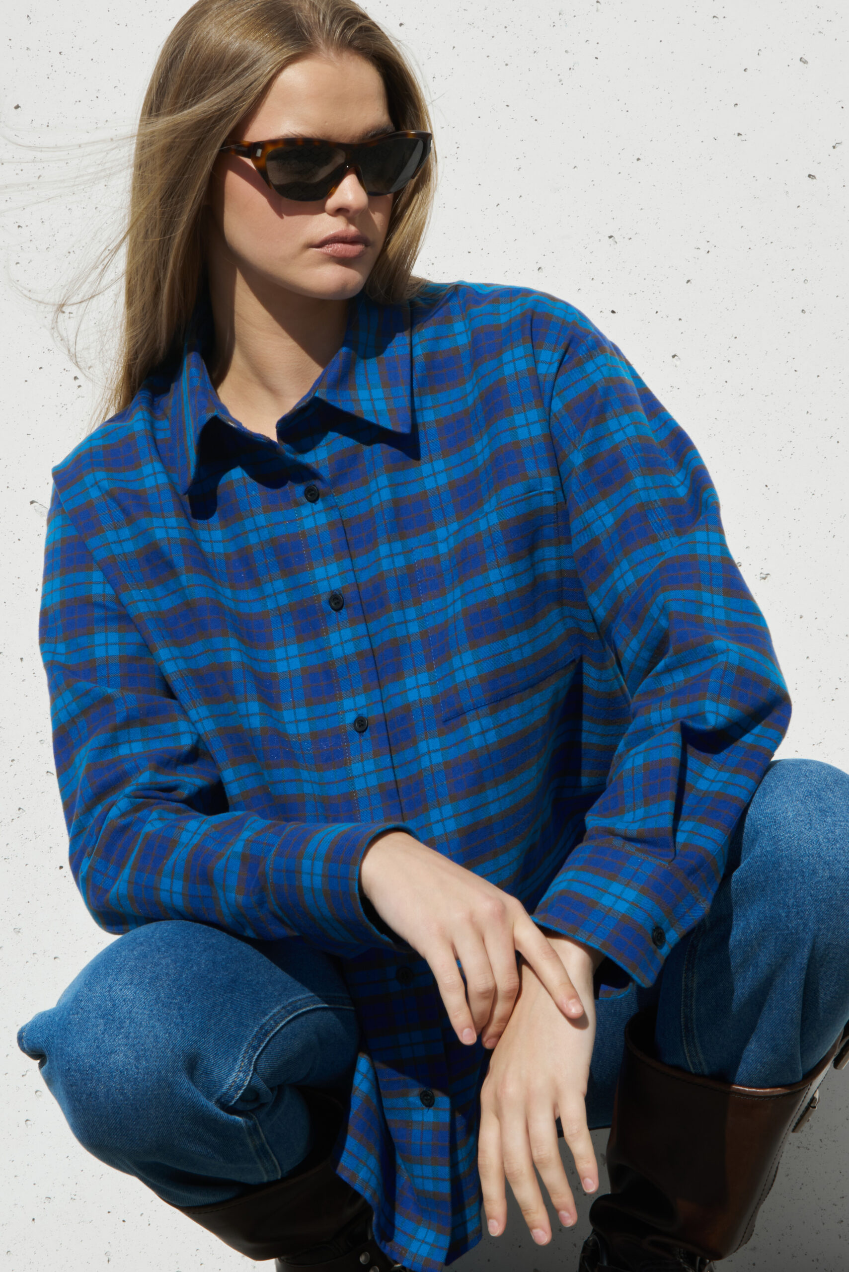 Koszula o kroju oversize w kratę. Model z klasycznym kołnierzykiem, zapinany na czarne logowane guziki na całej długości, z kieszenią na piersi po lewej stronie. Długie rękawy z mankietami oraz luźniejszy fason zapewniają komfort i swobodę ruchów. Doskonała jako baza wielu stylizacji.