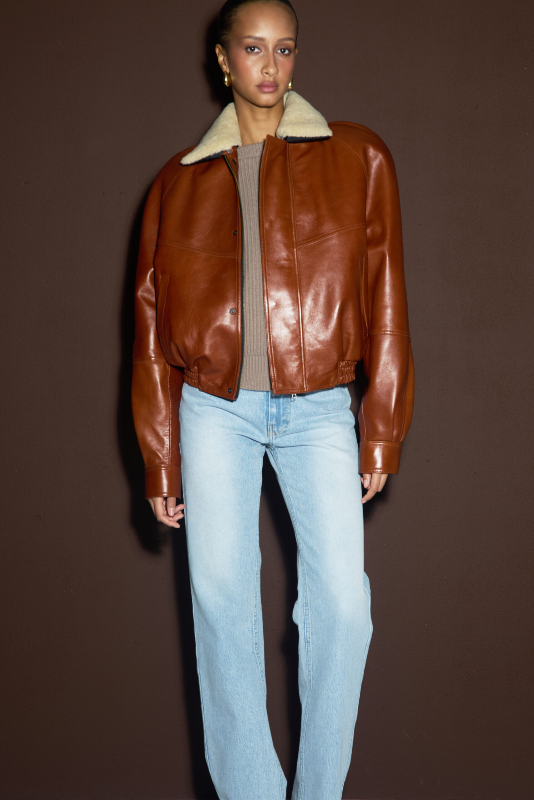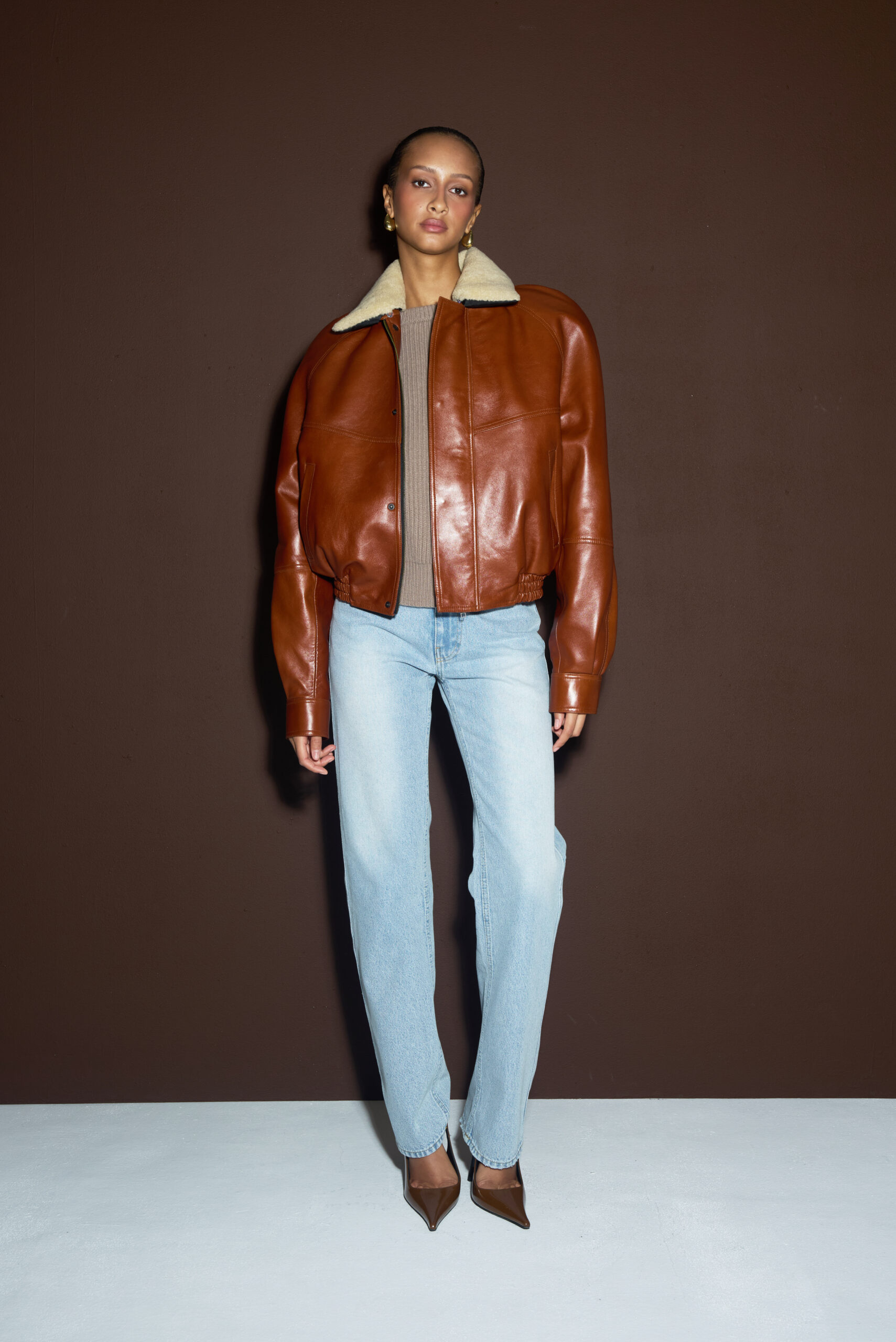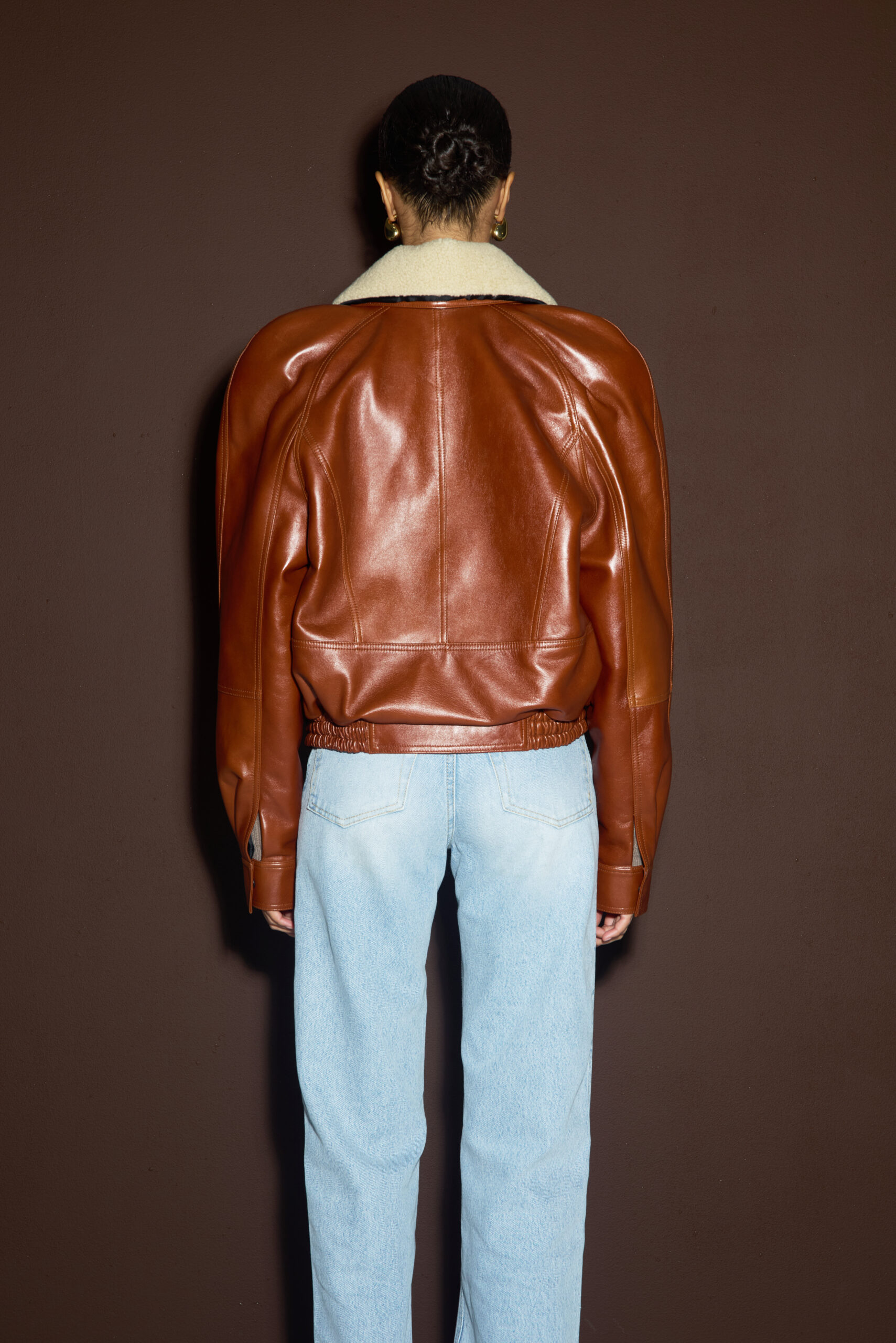 Kurtka skórzana o oversizowym kroju z kołnierzem. Wykonana z najwyższej jakości materiałów. Idealnie dopełnia każdą stylizacje.