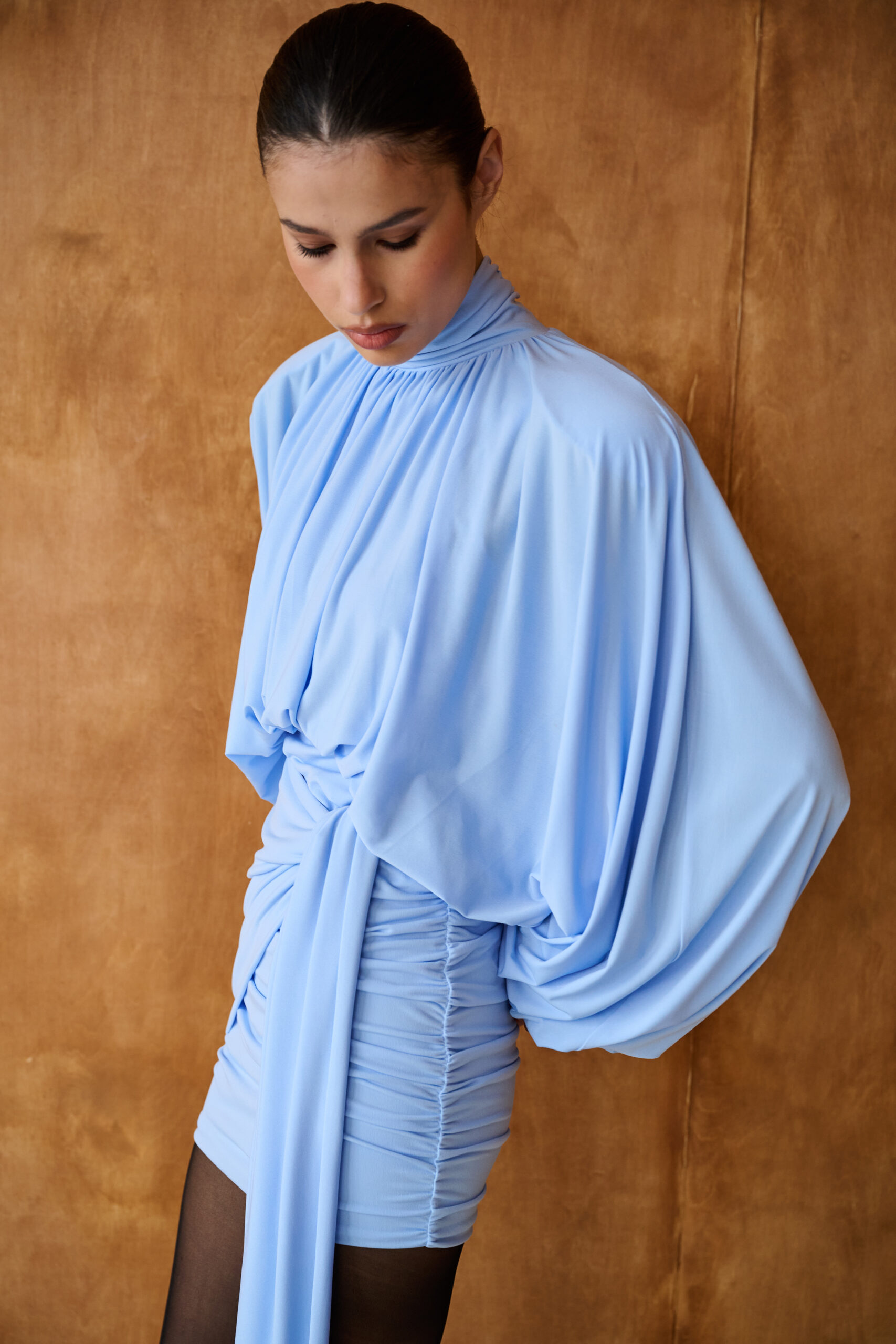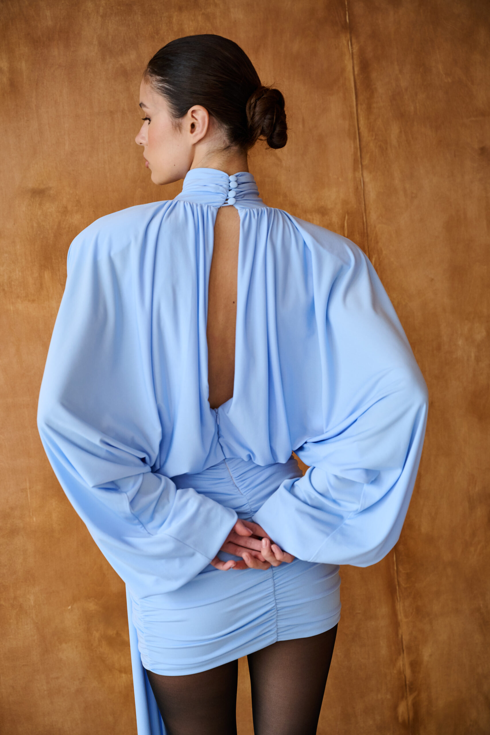 Sukienka Manila to propozycja klasycznej mini. Luźna góra w połączeniu z dopasowanym dołem subtelnie podkreśla sylwetkę. Delikatnie uniesione ramiona nadają całości charakteru. To doskonały wybór na wieczorne wyjścia.